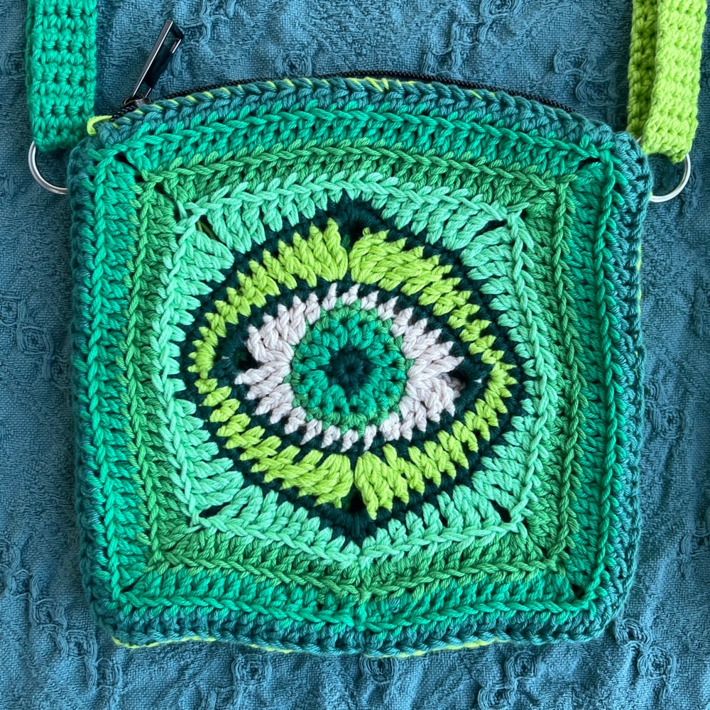 Made using the Granny Eye Square Pattern by: @WomanWalkingAWire